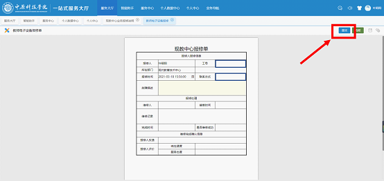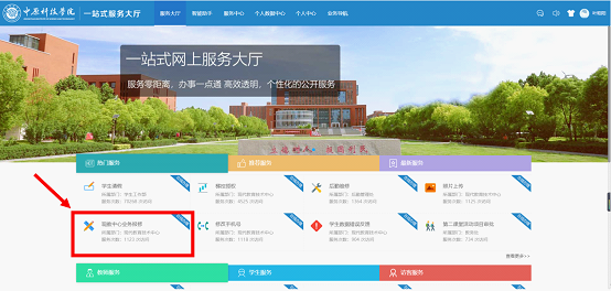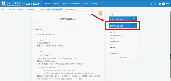(2)进入服务大厅之后,在默认界面选择“现教中心业务报修”。