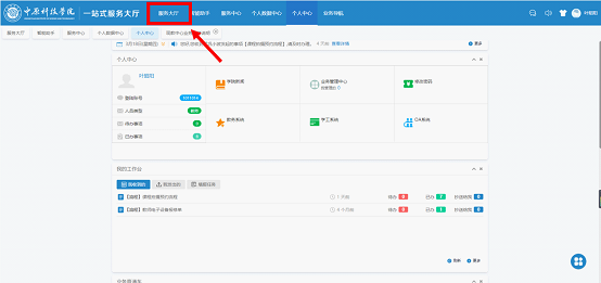 (1)登陆一站式服务大厅,选择页面顶端的“服务大厅”,进入服务大厅。