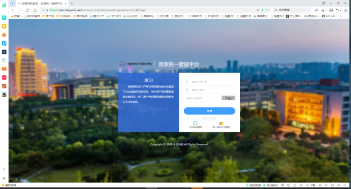 1、打开浏览器输入http://jw.zykj.edu.cn 打开如下图页面