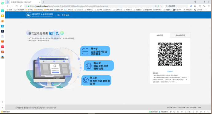 4、在本页面点击企业微信登录标签,出现企业微信二维码,打开企业微信再次扫码,即可进入教务系统。