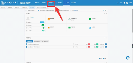(1)登陆一站式服务大厅,选择页面顶端的“ 服务中心”。