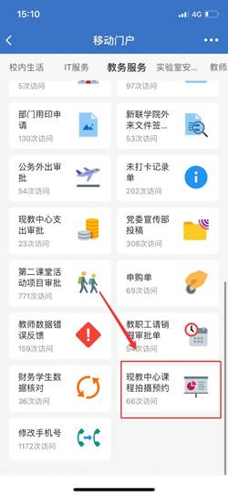 (2)进入服务中心之后,找到“现教中心课程拍课预约”,点击进入。