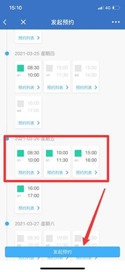 (4)点击绿色时间段后,点击右上方的预约选项,按照流程操作即可。